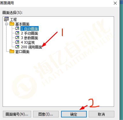 (2)弹出[画面调用]对话框,选择调用画面,再确定
