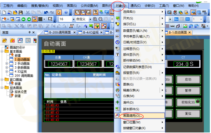 在我们做画面程序时常有部分画面是重复使用的,如果每次使用都重复建画面会降低工作效率,也会增加内存容量,因此在这种情况下,我们可以利用画面调用功能来进行处理。