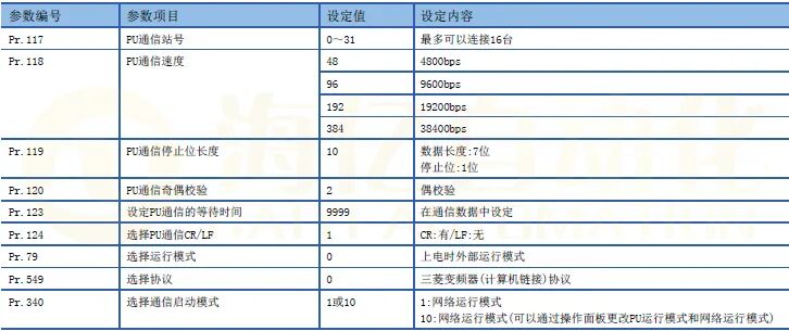 (2)变频器的参数 连接对象:内置RS-485端子时通信设定的内容(必须项目)