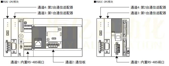 01 系统构成 (1)可以使用内置RS-485端口、通信板、通信适配器,使用变频器通信功能 (2)串行口的分配不受系统构成的影响,固定为下列编号