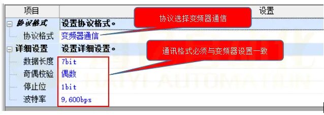 协议格式选择为[变频器通信]时,会显示以下画面: