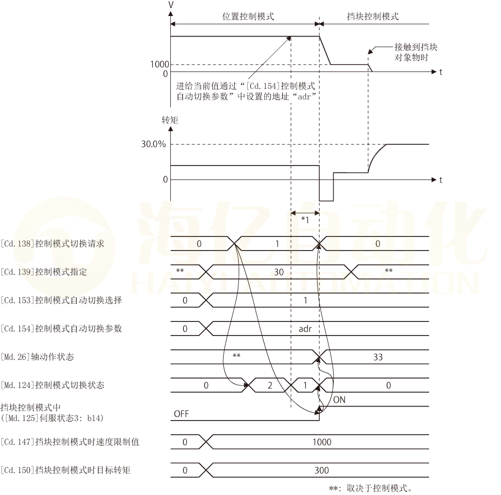有时候我们利用伺服转矩去压合某一产品的时候我们希望压在产品上的力是一个固定值且到达压合位置前需要高速运行到某一位置,这个时候就出现了位置切转矩模式。