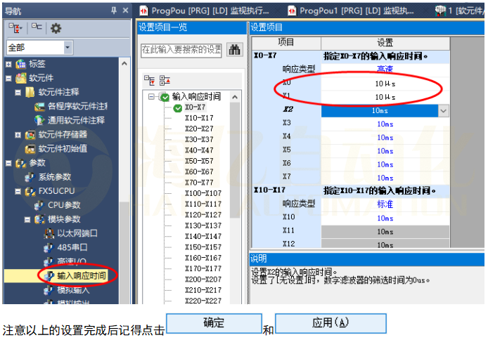 设置输入响应时间(建议将响应时间设置1ms以下)