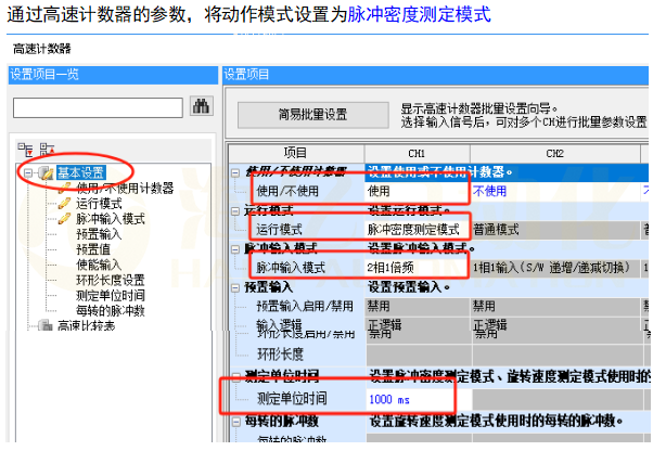 概述 脉冲密度测定模式对高速计数器的计数输入的脉冲进行计数,自动计算指定时间内的脉冲数。不支持高速脉冲输入输出模块。